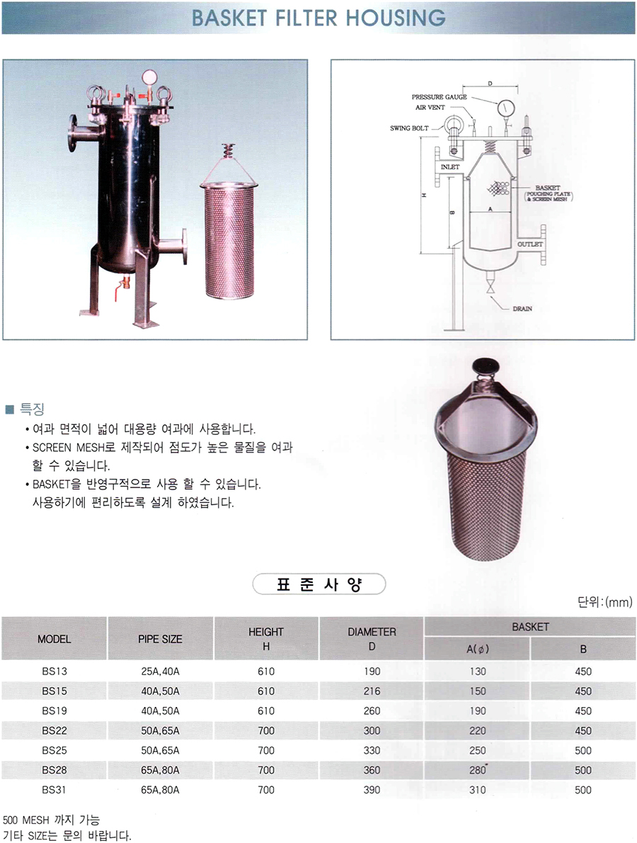 HOME > 제품소개 > BASKET FILTER HOUSING