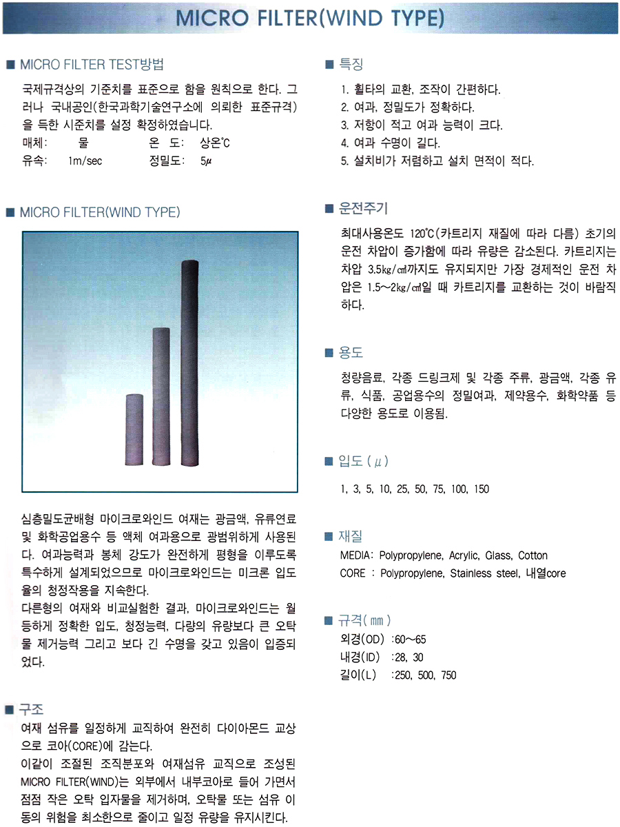 HOME > 제품소개 > MICRO FILTER(WIND TYPE)