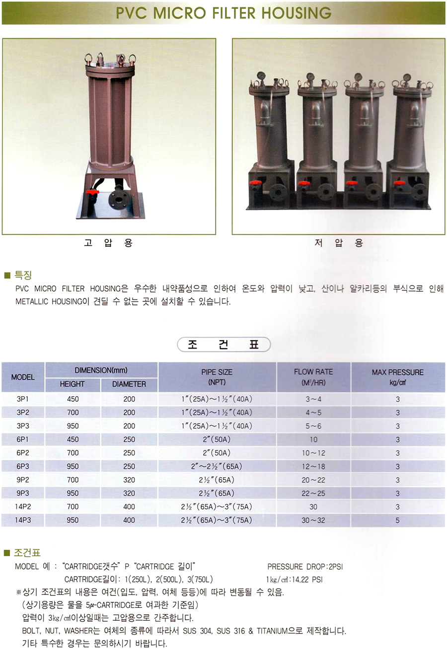 HOME > 제품소개 > PVC MICRO FILTER HOUSING